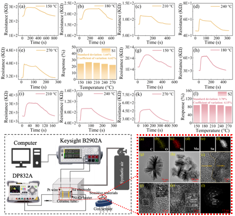 为此,研究提出了气体传感器实时监测锂电池电解液的挥发物碳酸甲乙酯(Ethyl methyl carbonate,EMC)预警热失控的策略。半导体气体传感器因其成本低、体积小、稳定性好、易于集成到车辆系统中等特点,成为最理想的锂电池状态在线检测方法。传统半导体气体传感器依然面临基线热漂移、灵敏度不足的问题,为此通过敏感元件的结构设计开发一种具有热漂移抑制效果的亚ppm级EMC气体传感器。该传感器在150℃–270℃的温度范围内,对10 ppm EMC气体的响应误差变化仅为3.70%,具有良好的温度漂移抑制效果。同时,该传感器具有出色的传感性能,对EMC的检测下限为200 ppb。本研究的重点是提出预测锂电池热失控的新策略,并解决传感器热漂移问题。该研究成果拓展了团队在锂电池热失控测控领域的技术手段,有力推动了我校测控技术与仪器学科的创新发展。