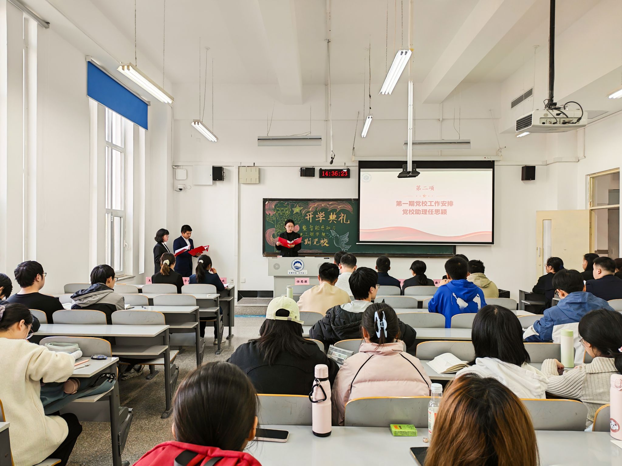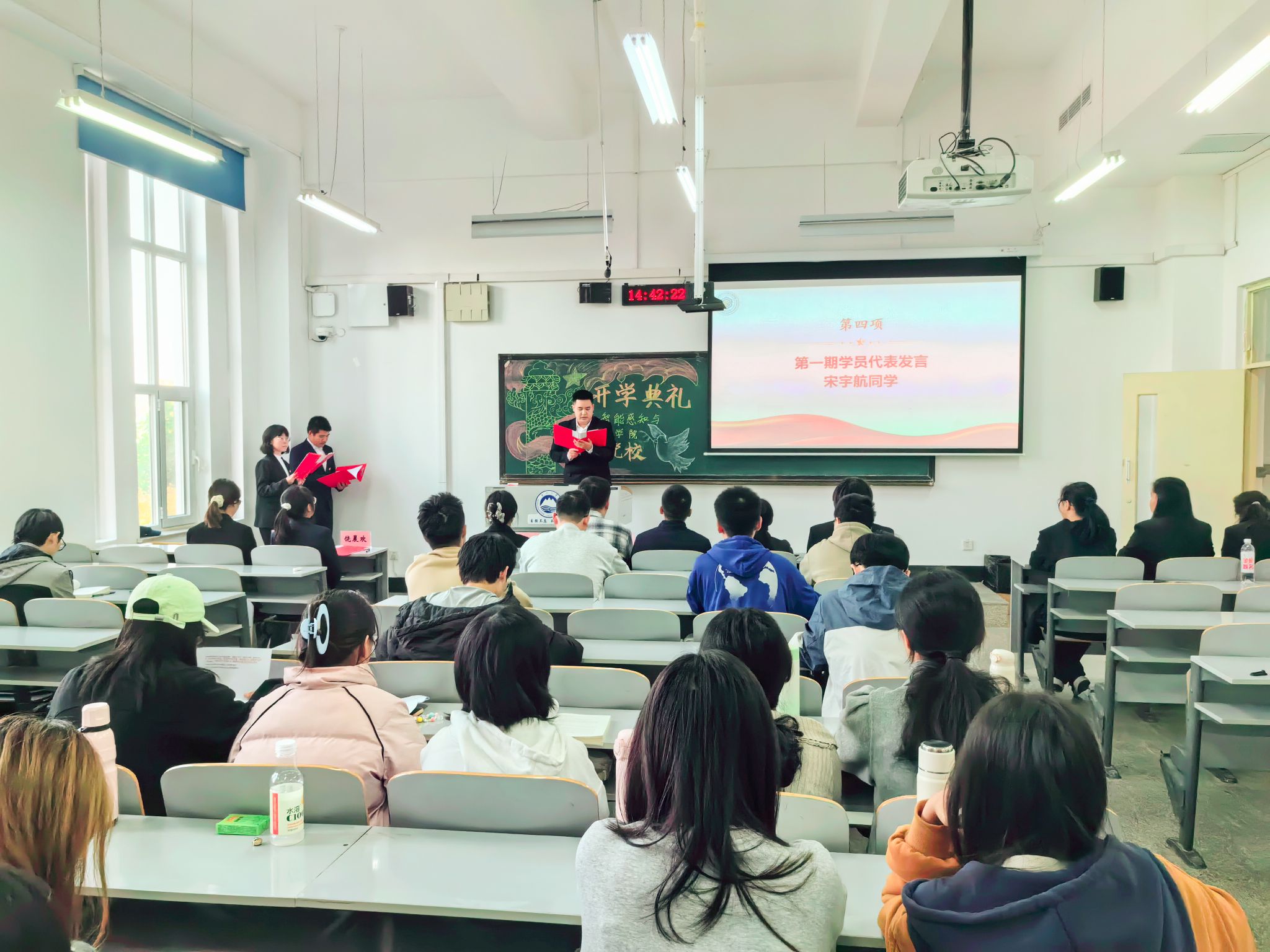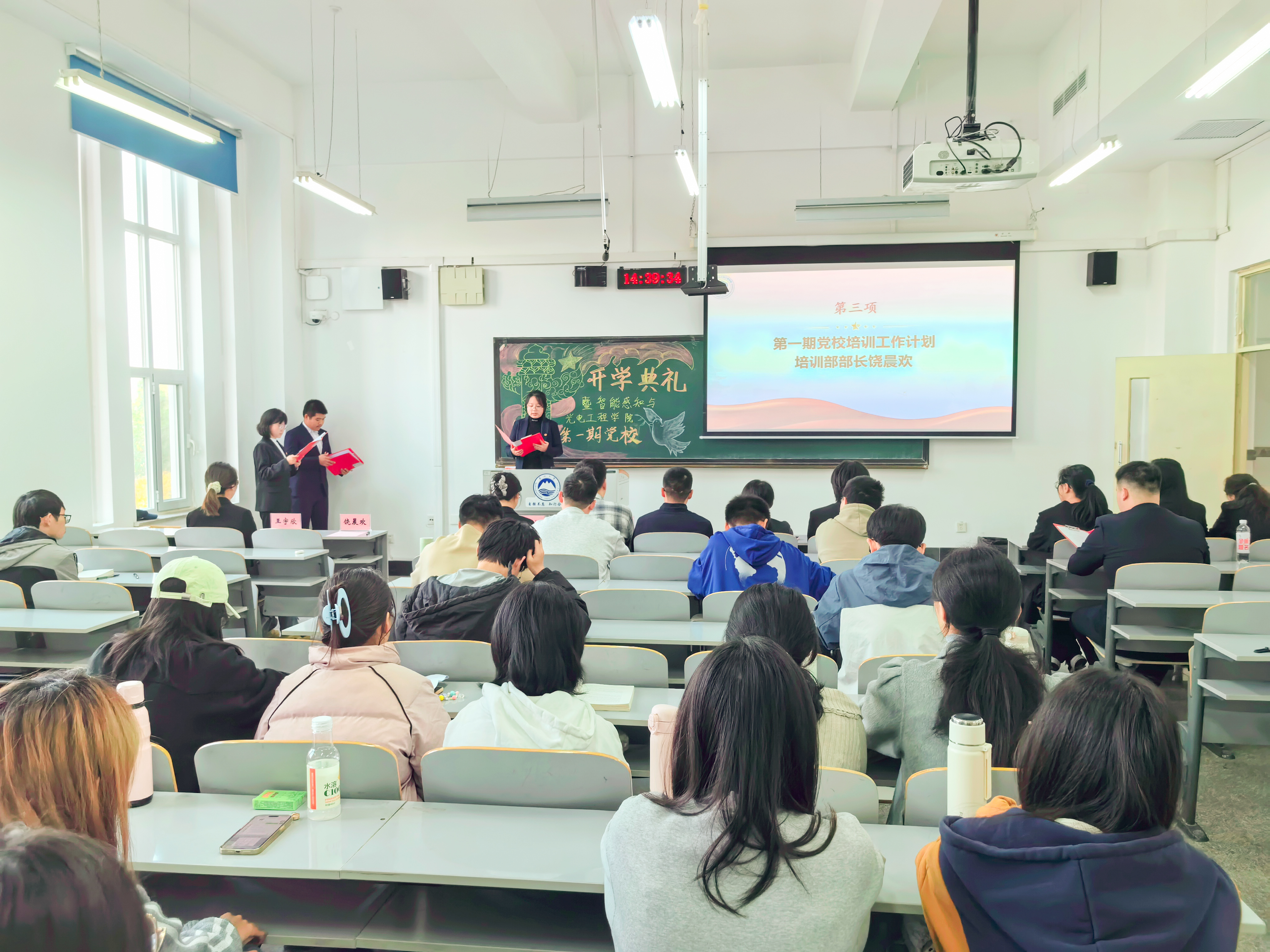 典礼在庄严的国歌声中拉开序幕。党校助理任思颖同学从理论学习、实践学习、交流讨论三个方面介绍了首期党校培训的整体安排。党校培训部部长饶晨欢同学宣读了培训工作计划,详细说明了课程内容、考核标准与学员要求,鼓励学员积极参与学习,严格要求自身,坚定理想信念。