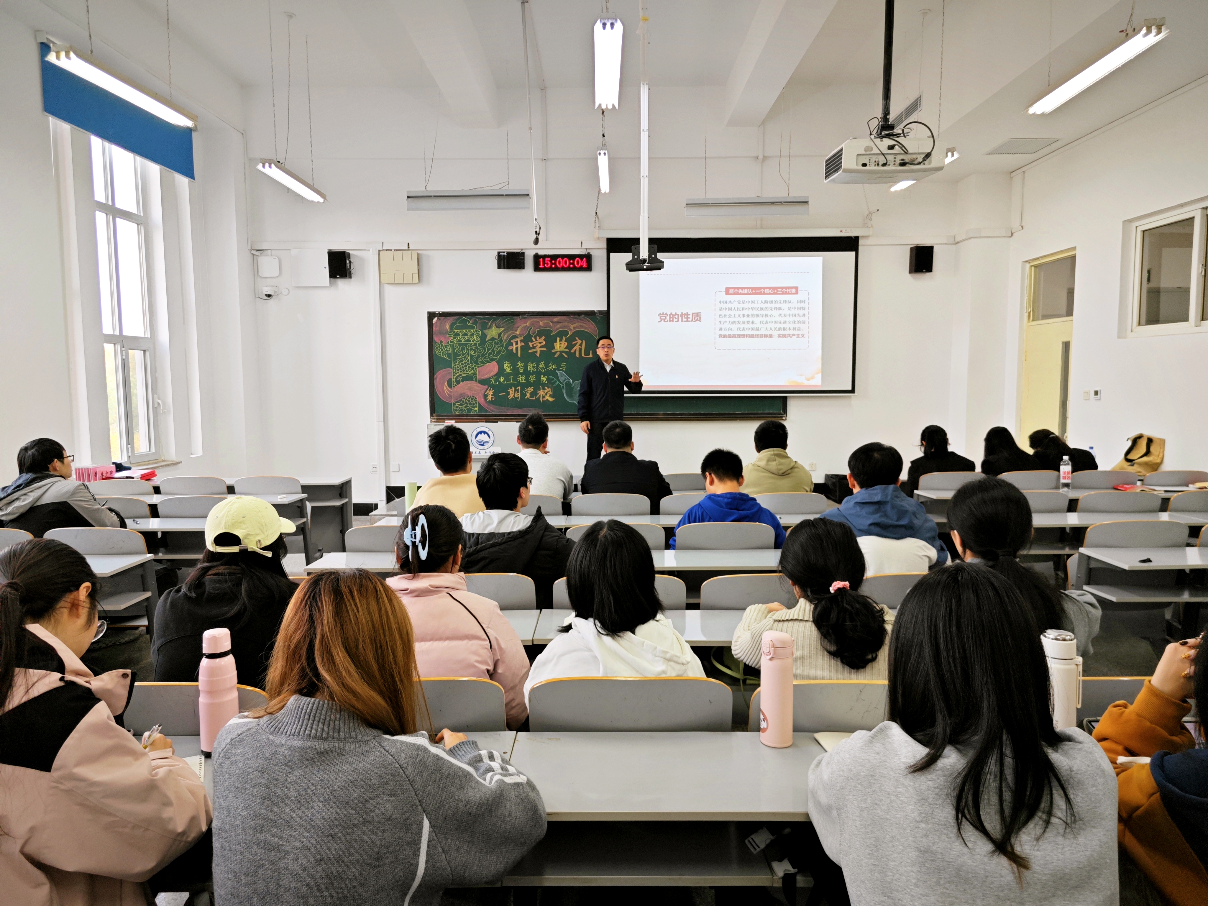 随后,赵强为学员们讲授了第一次党课。他以“坚持党的全面领导,建设中国式现代化”为主题,围绕产业升级、新能源战略、智能制造三大领域,结合党的先进理论,生动讲述了中国共产党带领全体人民建设现代化国家的奋斗历程,阐明了党的初心使命与中国特色社会主义制度的优越性。通过分析钢铁行业升级、新能源产业发展、传统制造业与AI融合等案例,引导同学们深刻领悟中国式现代化的本质要求,把握新时代新征程党的使命任务,鼓励大家将个人理想追求融入党和国家事业,为实现中华民族伟大复兴贡献青春力量。