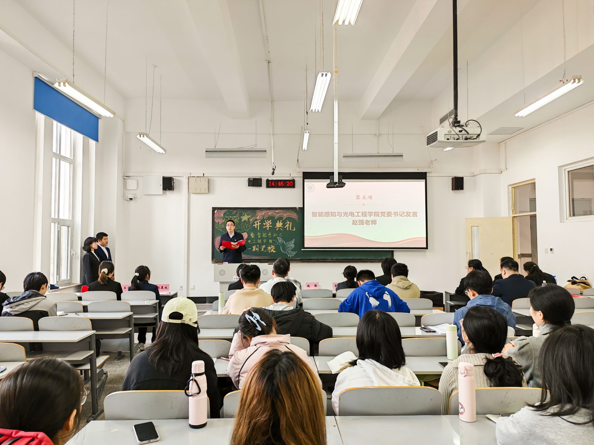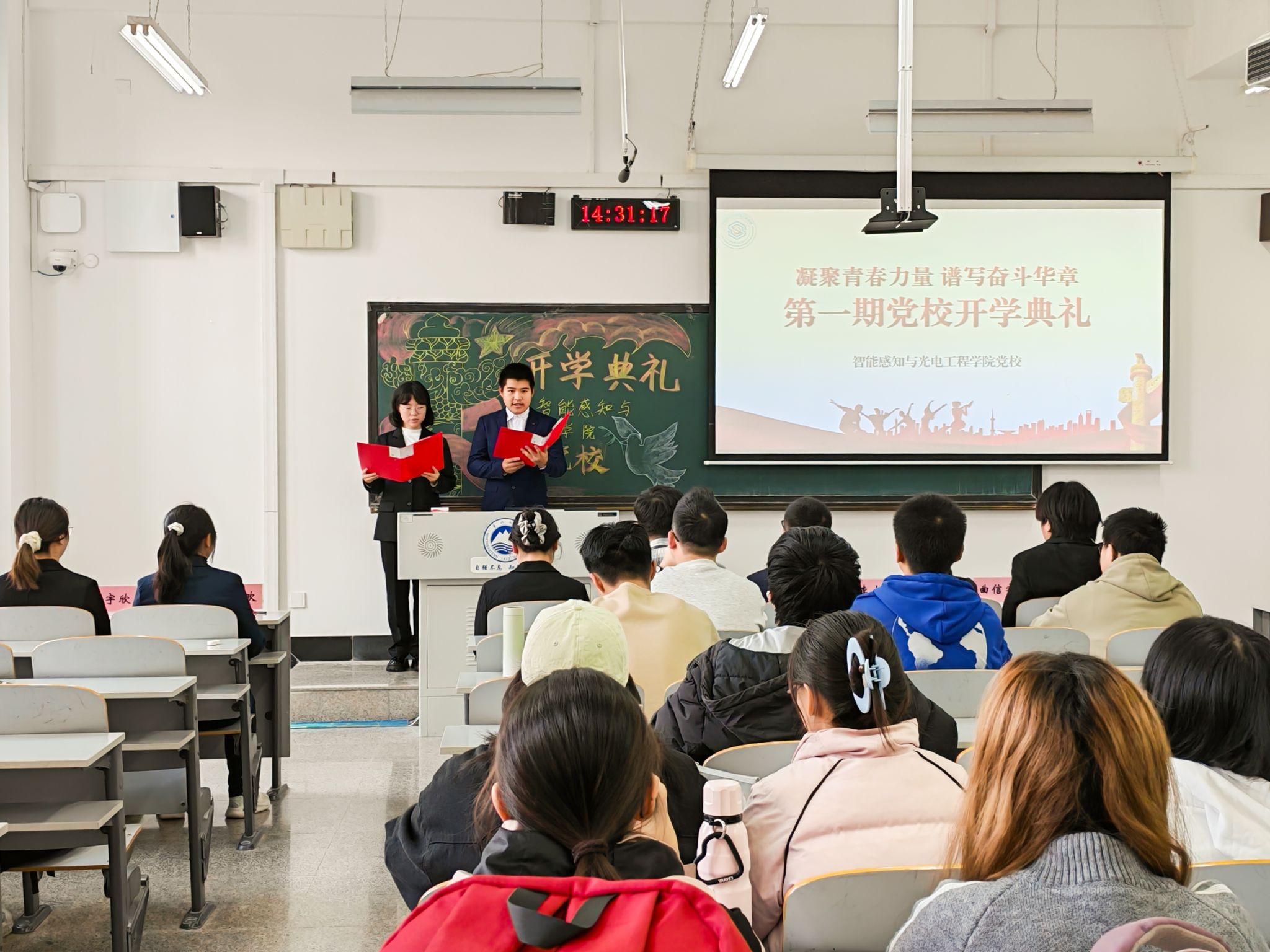 11月8日,智能感知与光电工程学院第一期党校开学典礼暨第一次党课在工学馆226顺利举行。学院党委书记赵强,党委副书记、副院长李少琼,辅导员周宣任出席典礼,学院党校学生干部及全体学员参加。