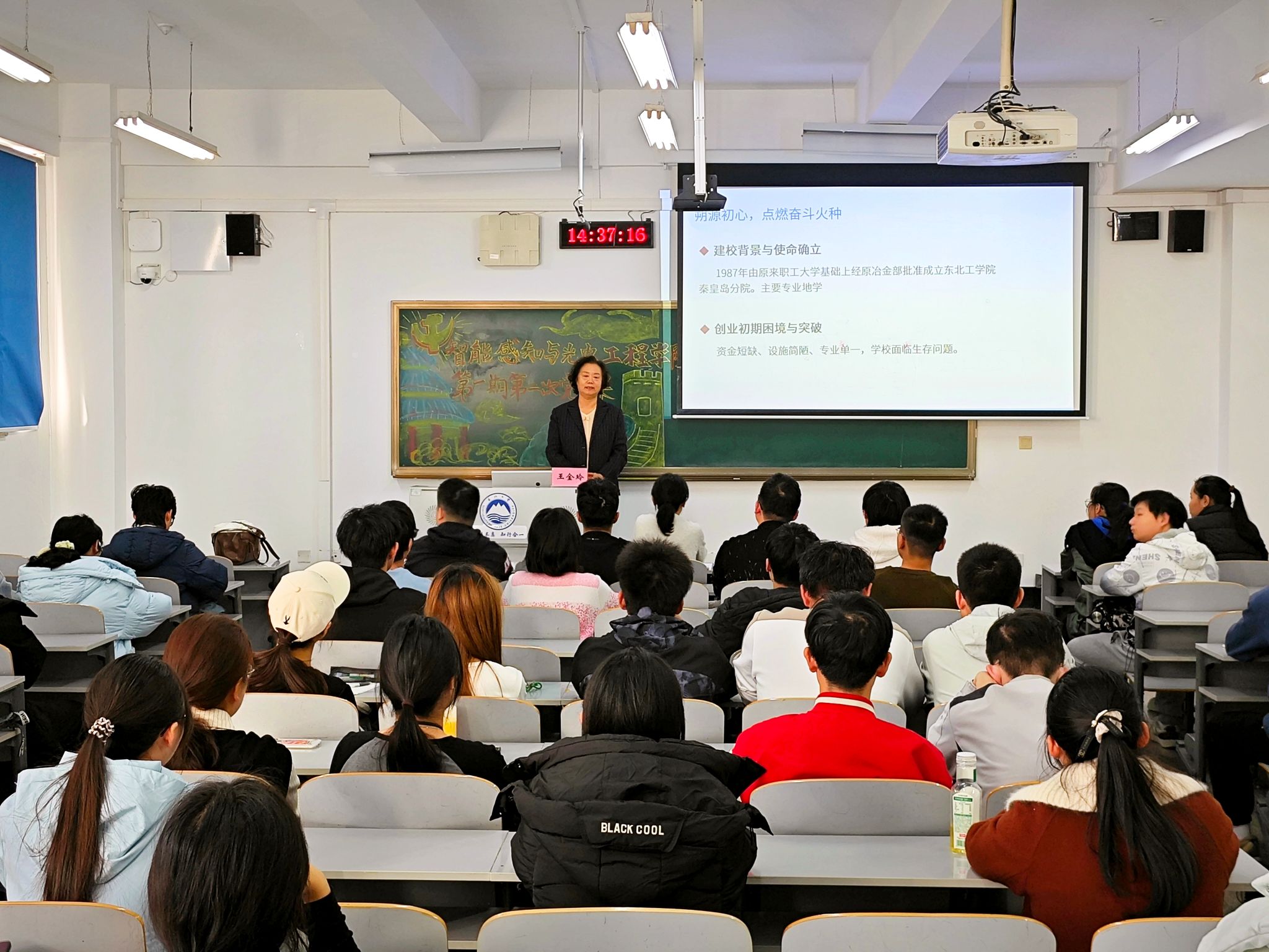王金玲以校史发展为核心脉络,结合珍贵史料、鲜活案例及优秀校友事迹,深情回溯了学校从艰难初创到蓬勃发展的奋斗征程。她细致梳理了学校筹备建设的关键节点,将建校初期的艰辛岁月娓娓道来。谈及那段攻坚克难的时光,王金玲动情地表示,彼时学校面临资金短缺、设施简陋、专业门类单一等多重困境,但全校师生始终拧成一股绳,坚定秉持“自强不息、知行合一”的校训精神,延续东大人爱国奋斗的精神基因,凭借不懈努力与顽强拼搏,一步步走出了一条从无到有、由弱到强的发展道路,为学校后续的建设奠定了坚实基础。