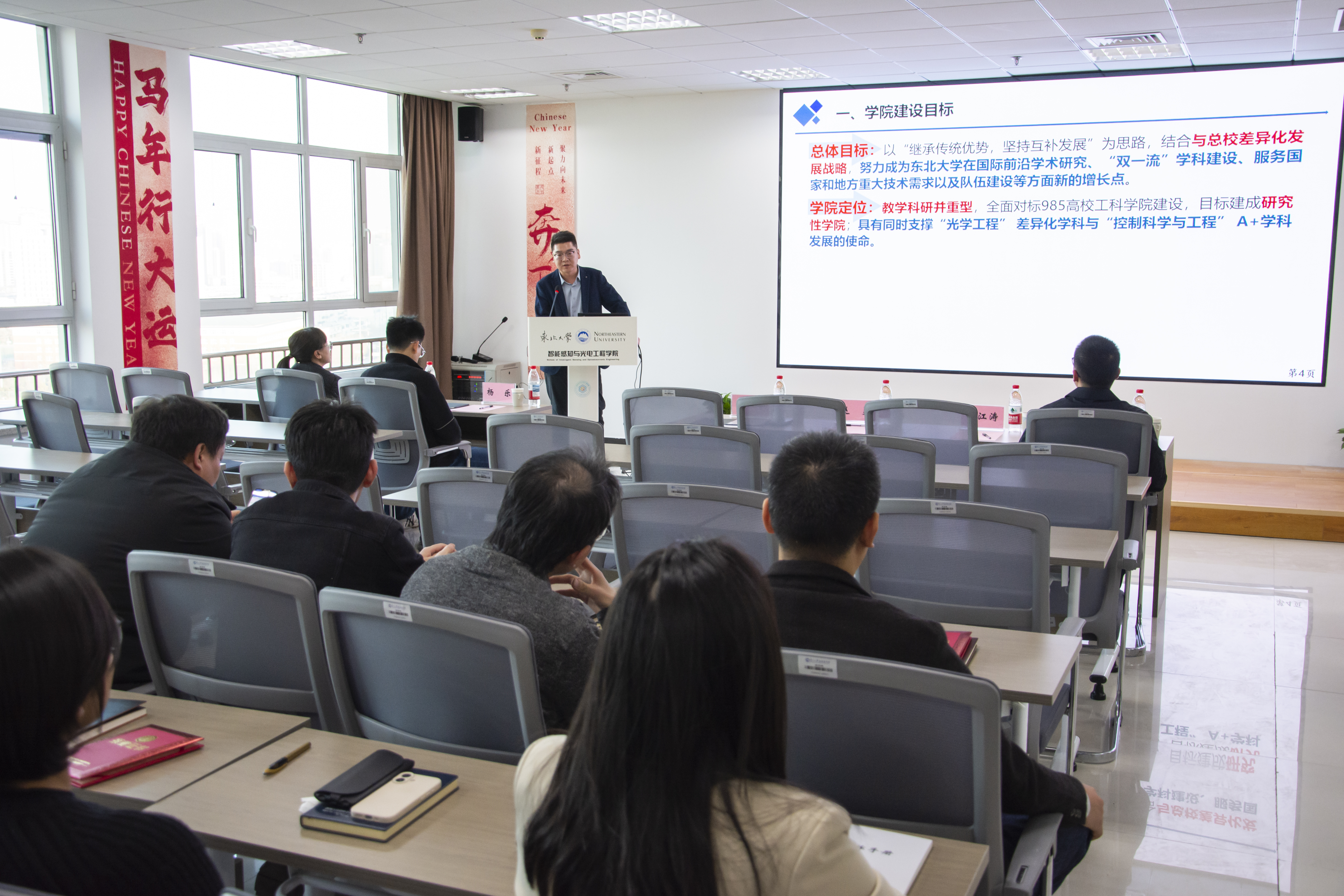 赵强以“深学细悟党的二十届四中全会精神 凝聚奋进‘十五五’新征程磅礴力量”为主题,围绕中国共产党第二十届中央委员会第四次全体会议公报内容进行讲解,详细展示了本次会议的核心要义与指导思想,深刻阐释了“十五五”时期国家的重点工作任务、必须遵循的原则和主要发展目标。结合东北大学2026年寒假战略研讨会精神,他具体说明了党和国家对教育事业发展的新要求。