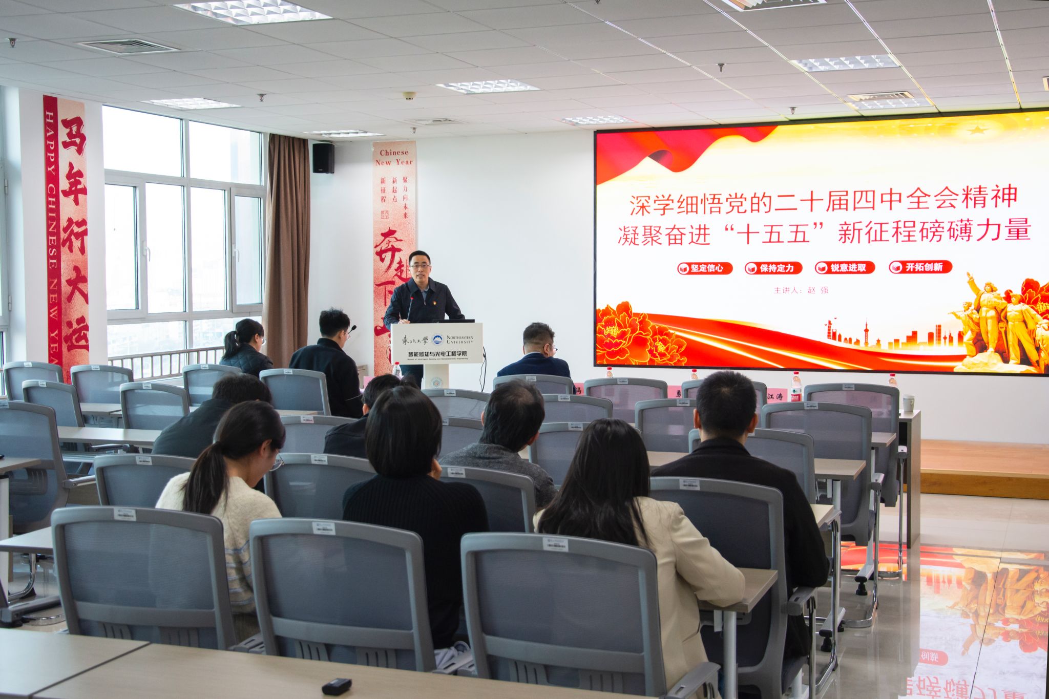 1月16日,智能感知与光电工程学院在科技楼9048会议室组织开展学习贯彻党的二十届四中全会精神专题宣讲。学院党委书记赵强、院长冯亭主讲。学院领导班子成员、教职工代表、学生代表参加宣讲。