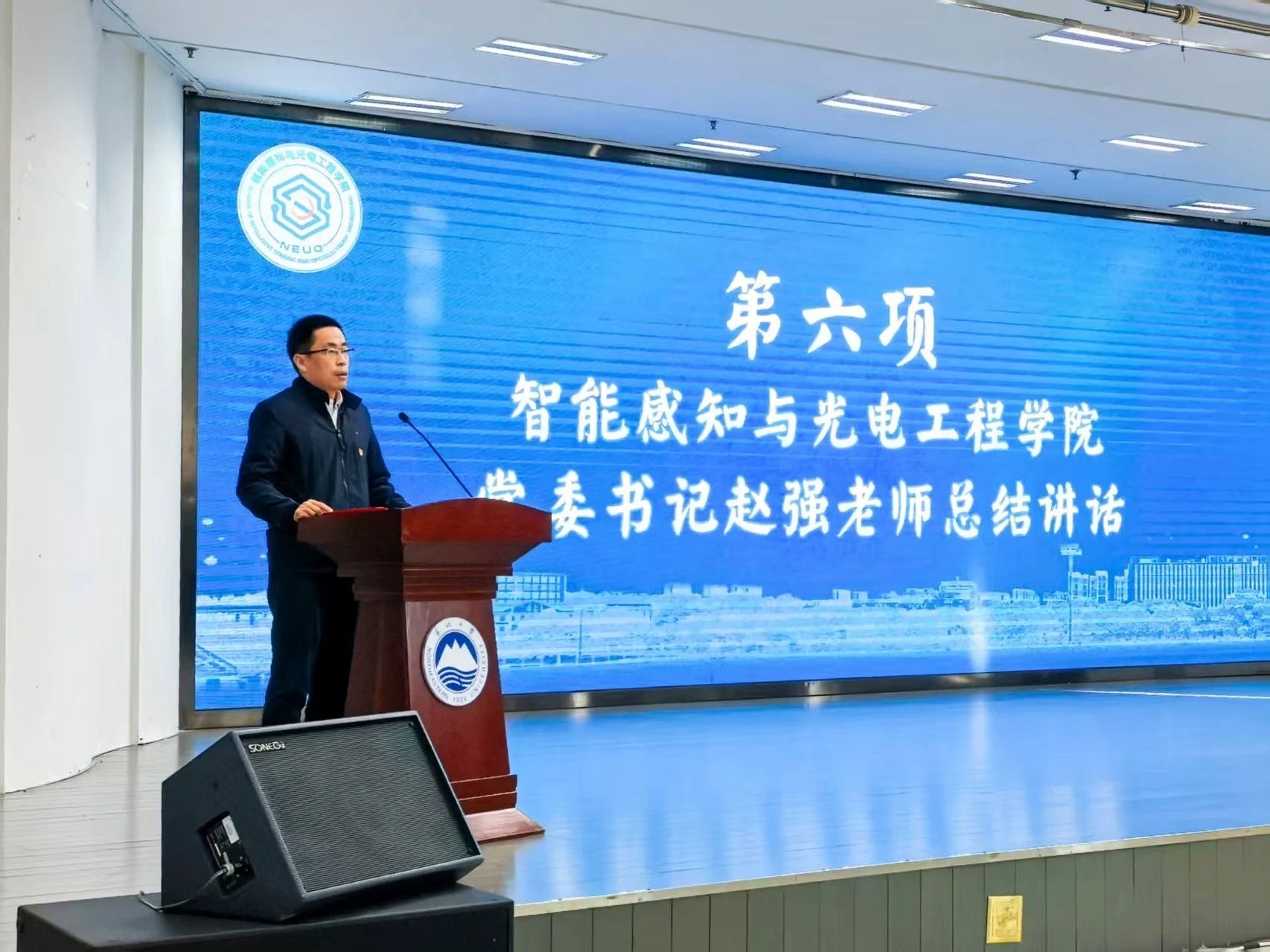 赵强发表总结讲话,对新任学生干部和受表彰同学提出殷切期望,希望大家珍惜荣誉、再接再厉,充分发挥榜样示范作用,带动更多同学共同进步,展现光电学子良好风貌。