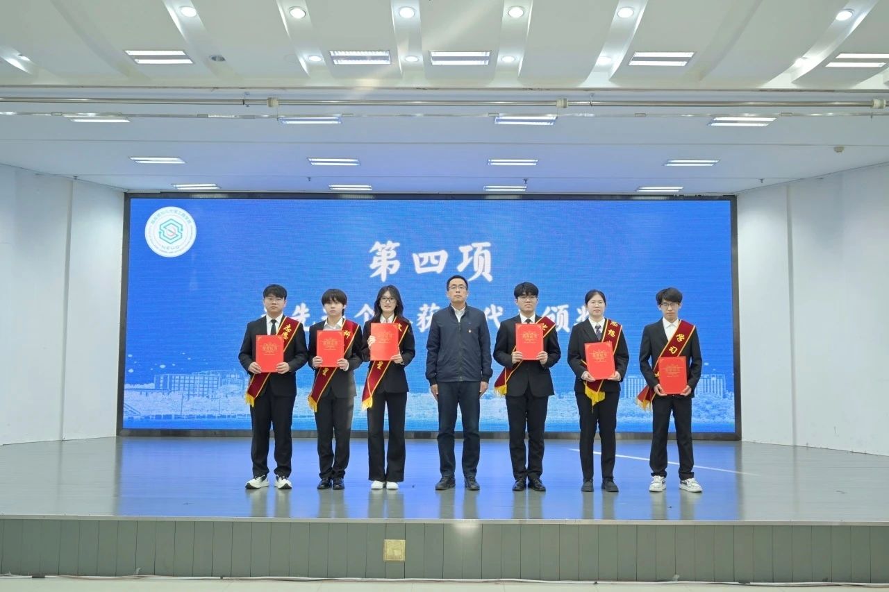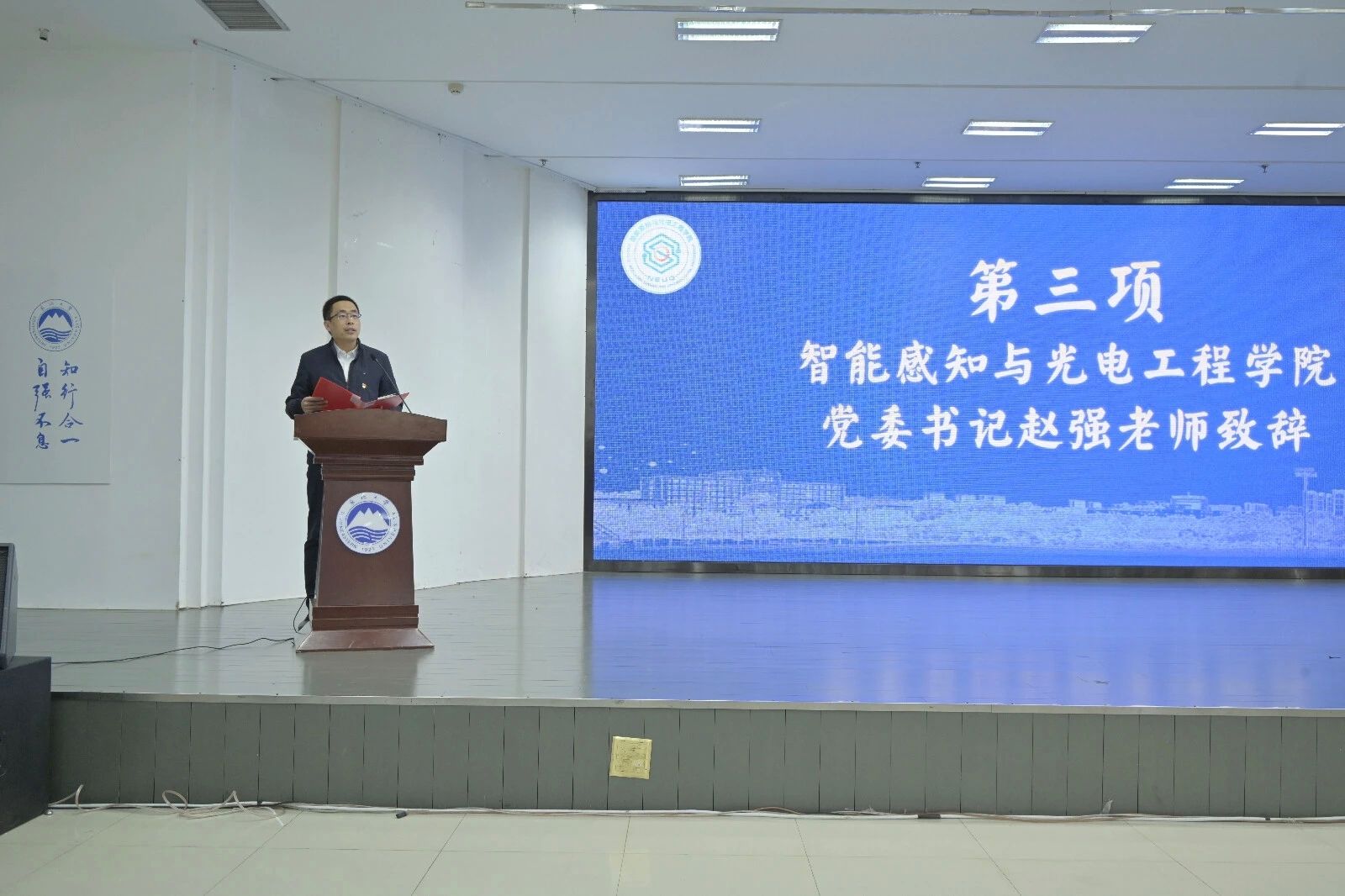李少琼宣读《智能感知与光电工程学院关于表彰学生先进个人的决定》,赵强老师为获奖学生代表颁奖。优秀学生干部代表尚传志发言,分享成长感悟与奋斗体会。