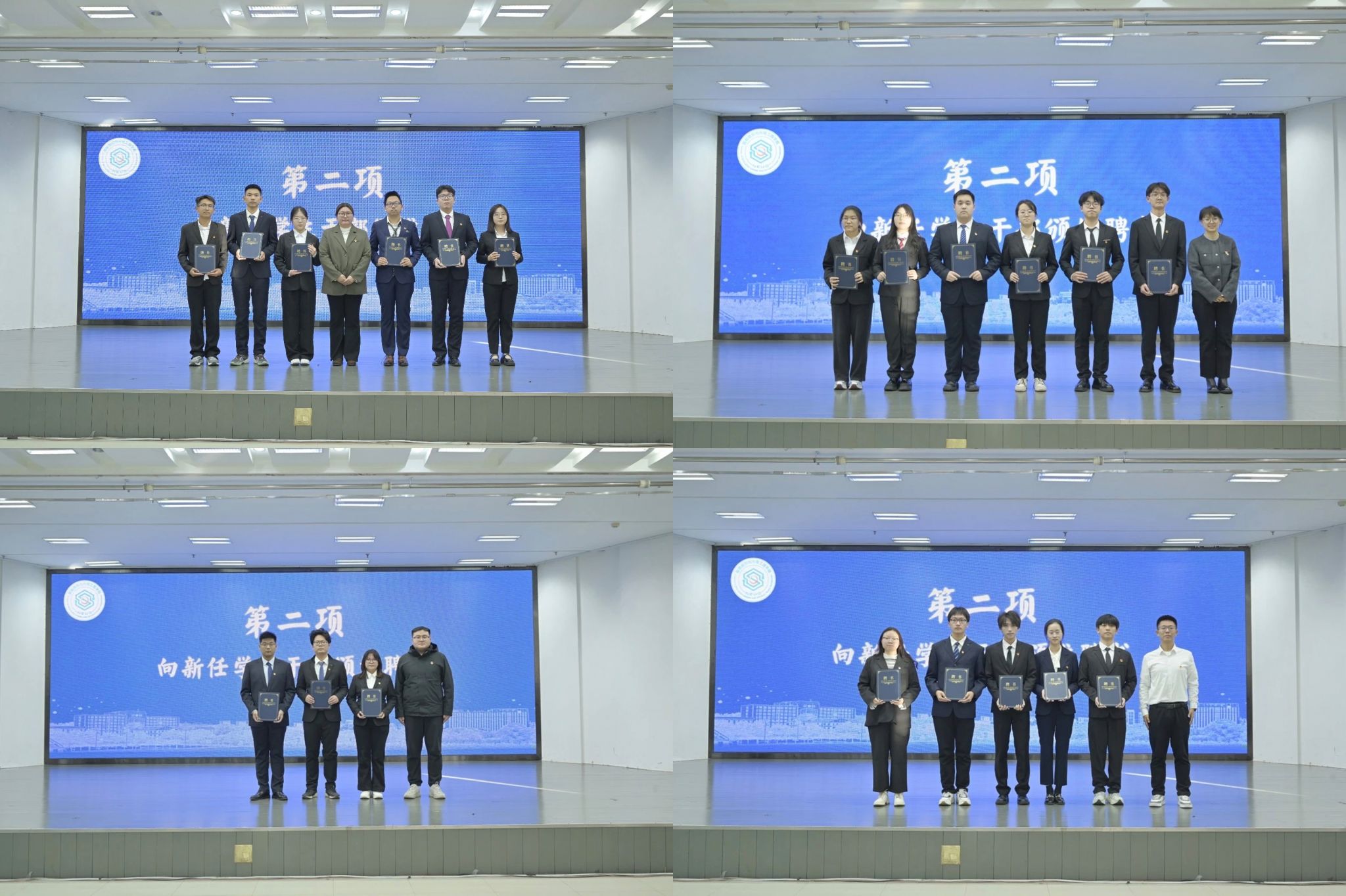 随后,举行首届院属学生组织干部聘任仪式,吕思菡宣读党校、学生会、团委直属部门、大学生创新创业协会、大学生记者团等部门学生干部任职名单,学生工作办公室老师为新任学生干部颁发聘书。