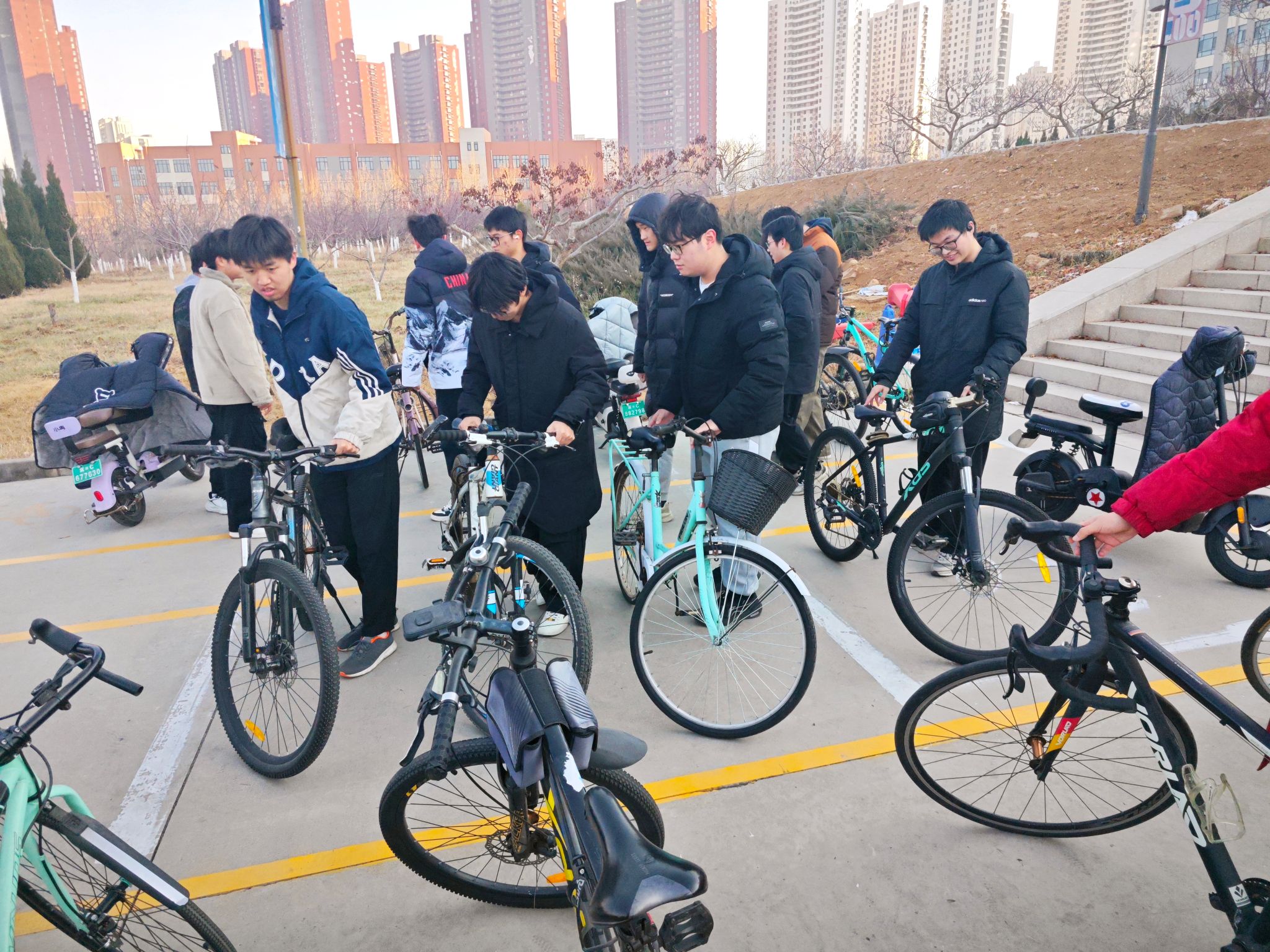 活动开始前,工作人员向同学们说明了卫生清洁工作的注意事项,并提醒大家注意自身安全。活动开始后,同学们组成活动小组,走进工学馆空闲教室,用清洁工具打扫黑板。大家配合默契,将黑板上不用的粉笔字擦拭干净。在南校区广场前,同学们将无序停放的自行车按照地面标识重新摆放整齐,为自行车停放处整理出更多停车位置,方便同学们停放自行车。