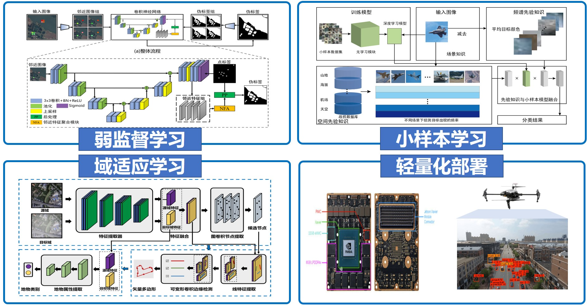 报告中,方乐缘教授围绕深度学习在遥感影像处理中的应用瓶颈展开深入阐述。他指出,高性能深度学习模型虽已广泛应用于遥感影像分析,但在星载/机载等实际场景中,数据数量、标注质量与计算能力的三重受限严重制约了智能模型的落地应用。针对这一核心痛点,方教授系统分享了其团队的三大创新研究成果:一是针对数据数量与质量受限问题,提出跨图像关联的半监督处理方法,有效摆脱模型对海量高质量原始数据的依赖;二是面对标注困难、代价高昂的难题,研发点标签智能解译方法,在保障处理精度的前提下显著降低标注成本;三是针对计算能力受限现状,设计高效网络层压缩方法,实现存储与计算代价的大幅降低,且不影响推理精度。