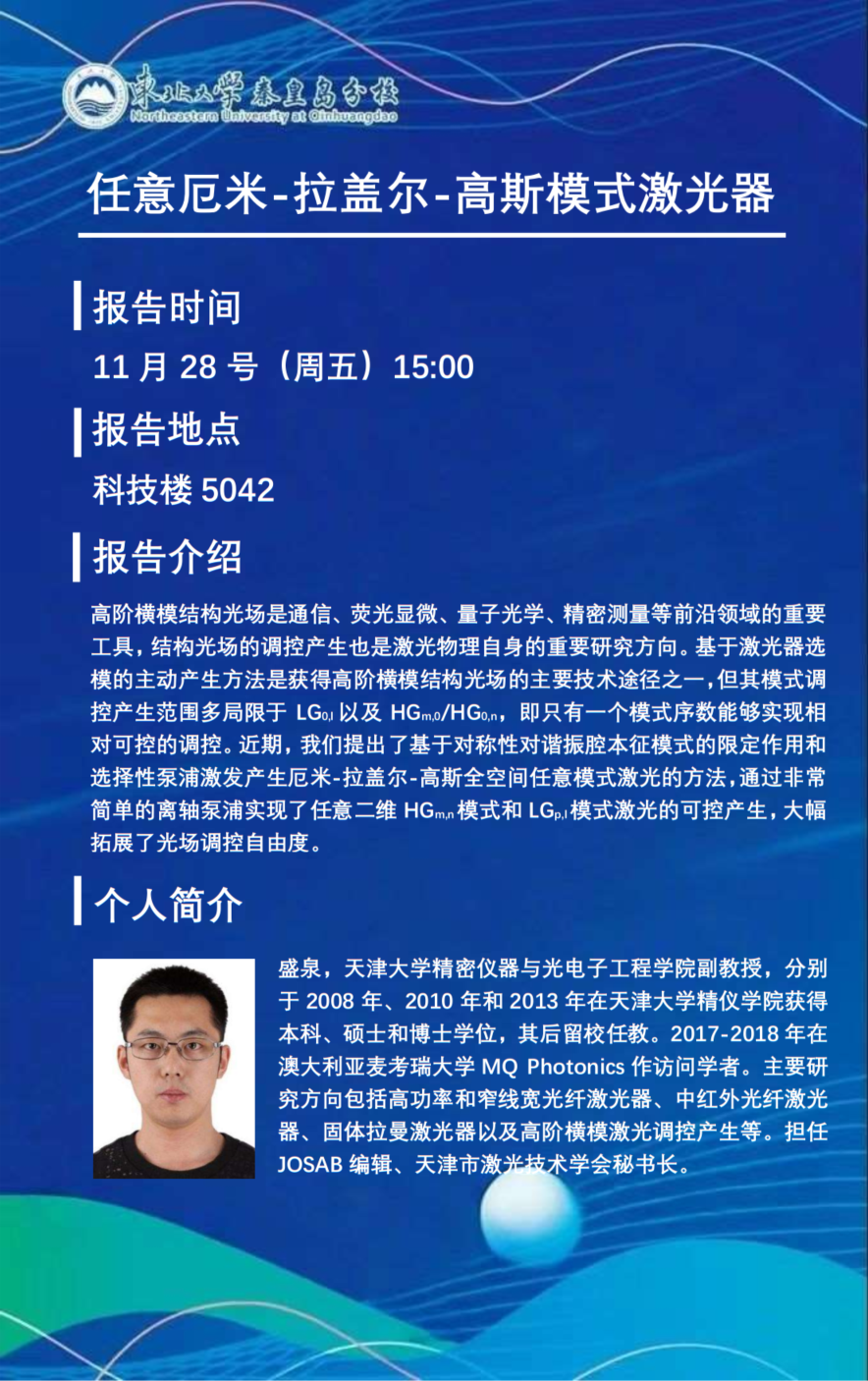 报告题目:任意厄米-拉盖尔-高斯模式激光器