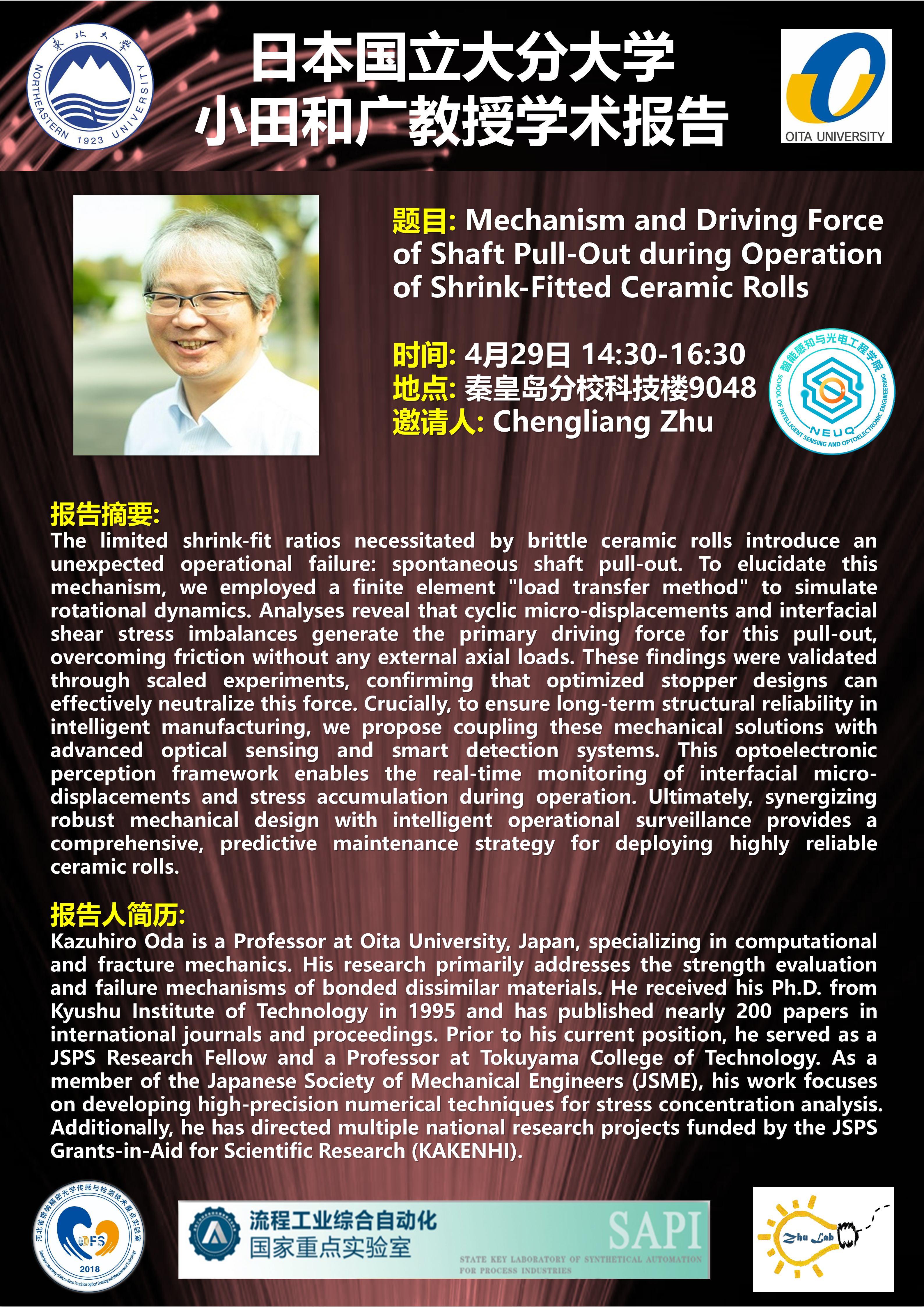 报告题目:Mechanism and Driving Force of Shaft Pull-Out during Operation of Shrink-Fitted Ceramic Rolls